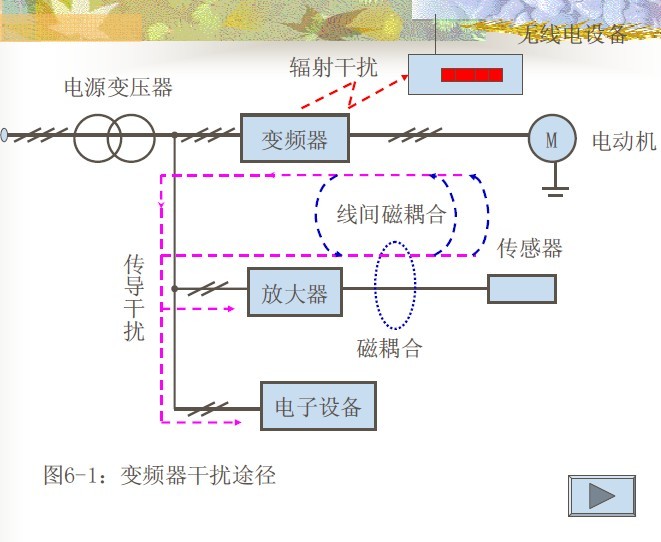 (2)電磁耦合干擾:對變頻器平行敷設的其它線路產生磁耦合