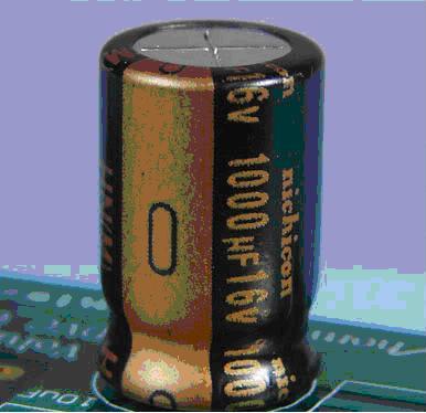 Rubycon高級系列電容。通常出現在升技的主板上。升技的中高端主板全部采用的是Rubycon的電容。CPU供電部分一般也是采用的MBZ系列。MBZ系列電容也經常出現在顯卡上。
