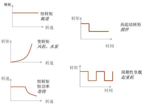 變頻器的正確選擇對于控制系統(tǒng)的正常運(yùn)行是非常關(guān)鍵的。那么在思考如何選擇變頻器時,必須要充分了解變頻器所驅(qū)動的負(fù)載特性。一般在實(shí)踐中常將生產(chǎn)機(jī)械分為三種類型: 恒轉(zhuǎn)矩負(fù)載、恒功率負(fù)載和風(fēng)機(jī) 、水泵負(fù)載。