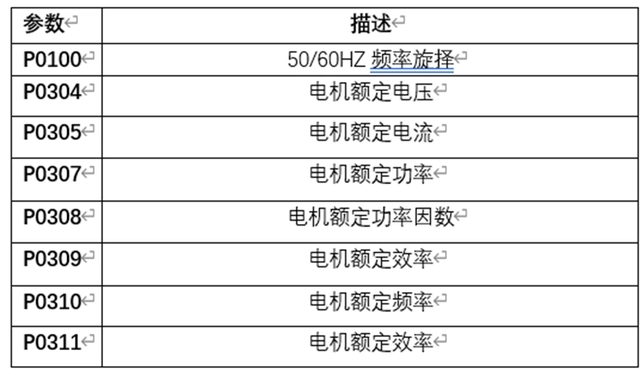 (以上根據電機銘牌設置,注意P0309參數,只有當P0100=1時可見,為0時內部自動計算該值。)