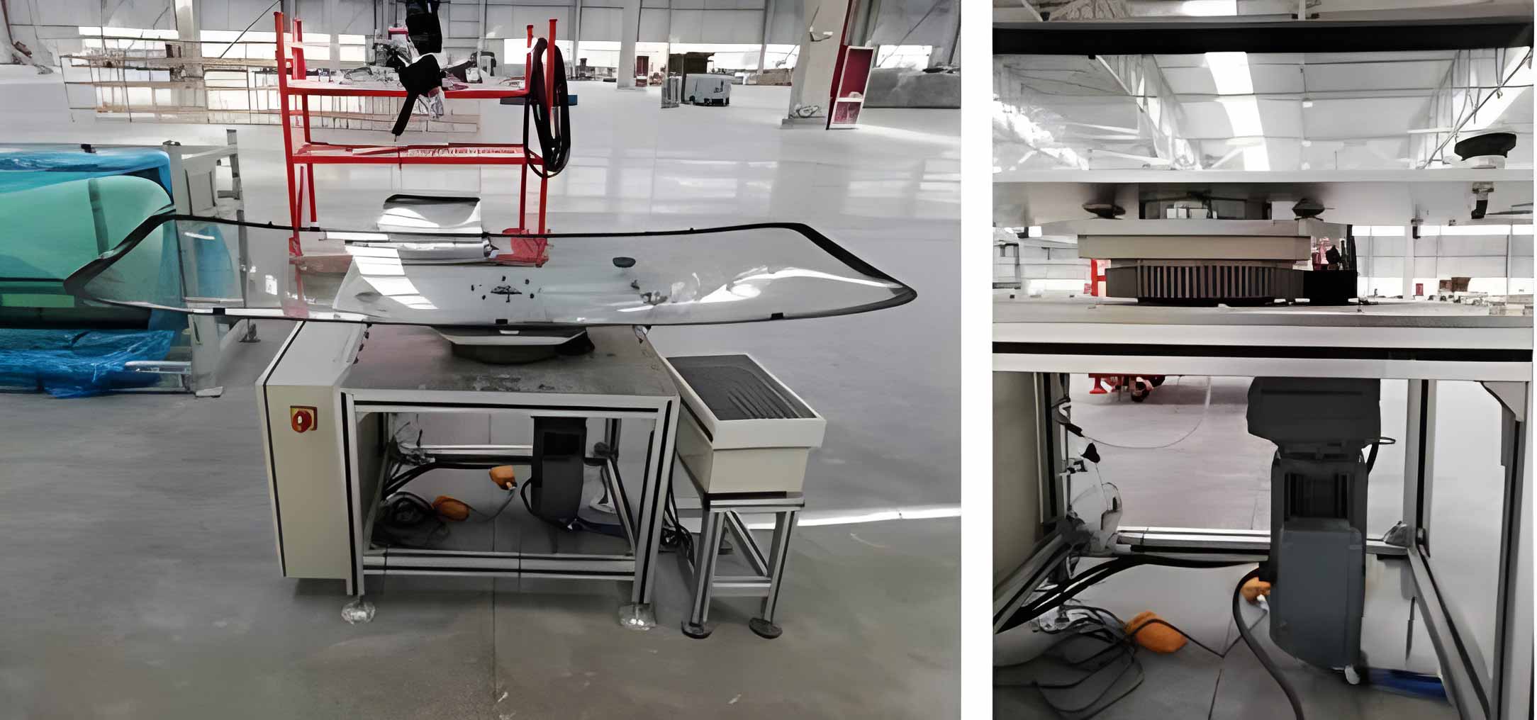 如上圖所示,這是一個手動涂膠臺。由腳踏開關(guān)控制變頻器,變頻器再驅(qū)動旋轉(zhuǎn)電機,從而使玻璃旋轉(zhuǎn)至需要的方位。