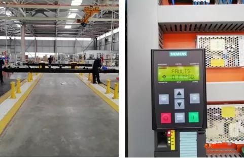 問題描述:從底盤線轉(zhuǎn)往綜合線的空中EMS的一個小車,在空載時,前進后退均正常。小車的前進后退是由2個同型號的變頻器(型號為SINAMICS V20)驅(qū)動2個同型號的電機來實現(xiàn)的。2個電機同時正轉(zhuǎn)時,小車前進;同時反轉(zhuǎn)時,小車后退。