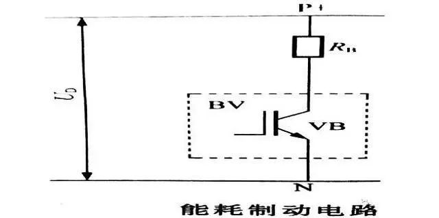 能耗制動電路由制動電阻RB和制動單元BV構成,如下圖所示。