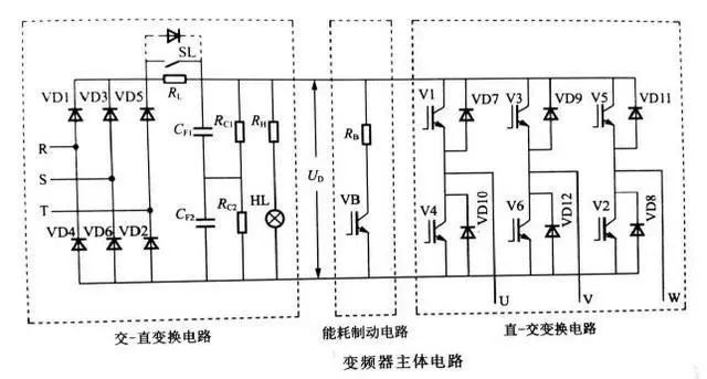 不同系列交-直-交變頻器內部的主體電路基本相同,變頻調速過程中出現的許多現象都可通過主體電路來進行分析。