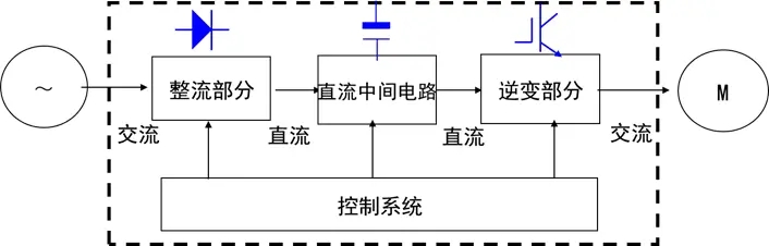 控制電路完成對主電路的控制,整流電路將交流電變換成直流電,直流中間電路對整流電路的輸出進行平滑濾波,逆變電路將直流電再逆變成交流電。對于如矢量控制變頻器這種需要大量運算的變頻器來說,有時還需要一個進行轉矩計算的CPU以及一些相應的電路。