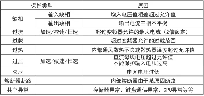由于變頻器大量的使用了各種半導體器件,如整流橋、IGBT、電解電容等,要想保證變頻器長期穩(wěn)定工作,則必須保證各器件工作在其允許條件下。超出條件則必須立刻或延時停止變頻器工作,待異常條件消失后才能重新開始工作,如保護失效或動作延遲將導致變頻器出現(xiàn)不可恢復性損害。