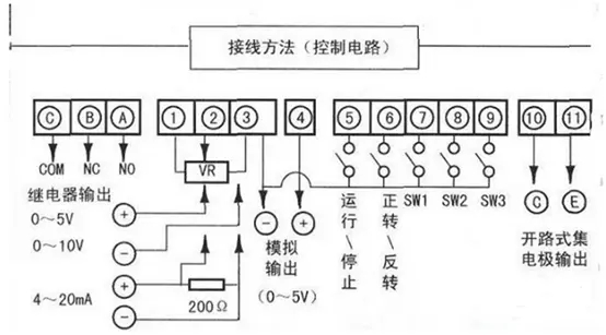 2、由于控制電路的頻率輸入信號是微小電流,所以在接點輸入的場合,為了防止接觸不良,微小信號接點應使用兩個并聯(lián)的節(jié)點或使用雙生接點。