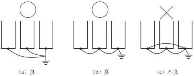 (5)從安全及降低噪聲的需要出發(fā),變頻器必須接地,接地電阻應(yīng)小于或等于國家標準規(guī)定值,而且要較粗的短線接到變頻器的專用接地端子上。當(dāng)數(shù)臺變頻器共同接地時,勿形成接地回路,見圖10-9。