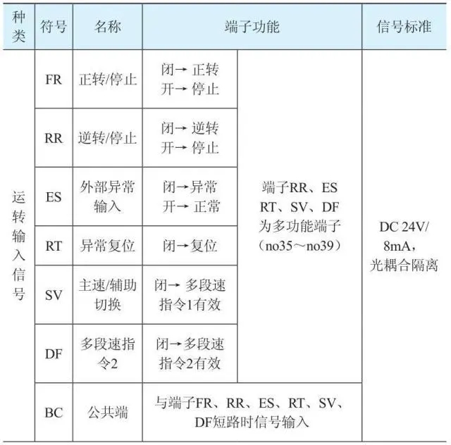 控制電路端子的符號、名稱及功能說明見表10-8。