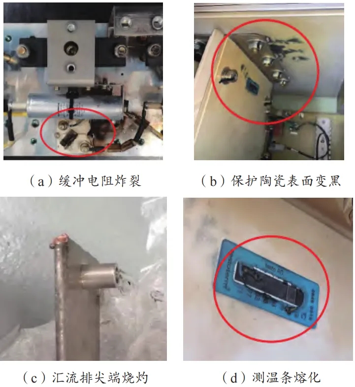 3)檢查直流匯流排尖端部位出現灼燒,見圖3c;