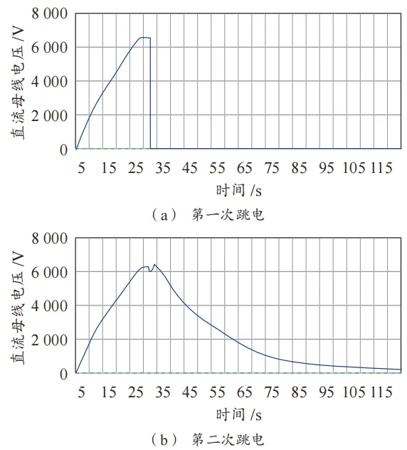 兩次跳機故障時的直流母線電壓記錄見圖 3。