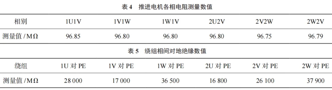經測量分析推進電機繞組電阻和對地絕緣均正常,可以排除負載故障。