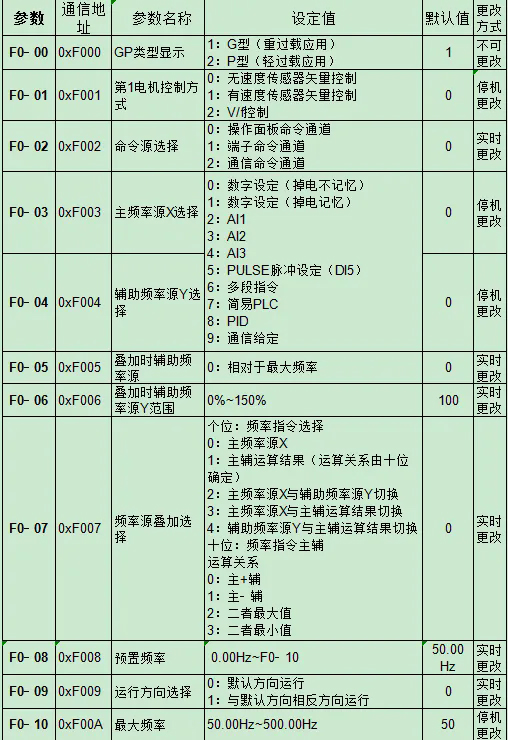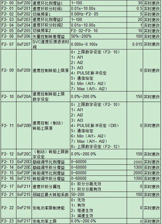 F2 矢量控制參數(shù)