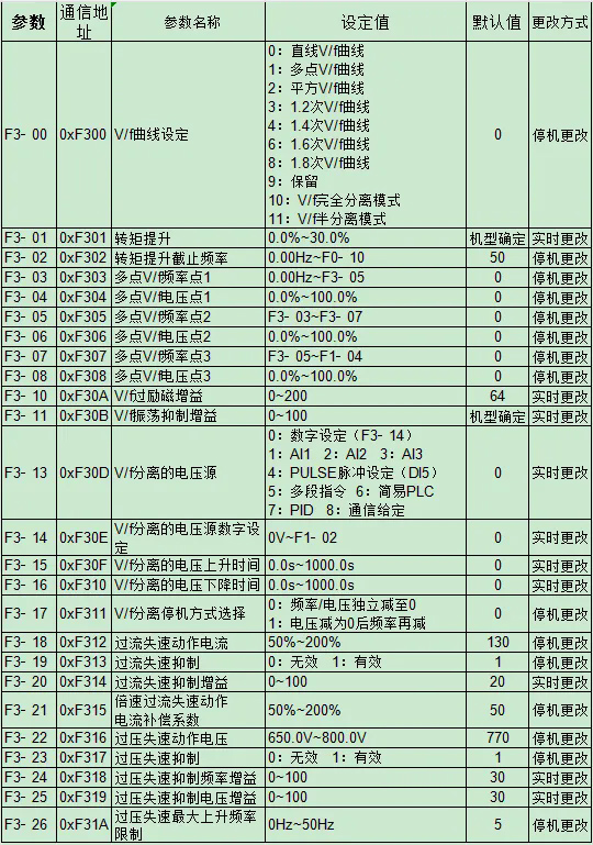F3 V/f控制參數(shù)