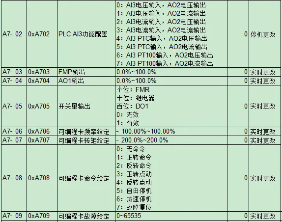 A7 用戶可編程卡參數(shù)