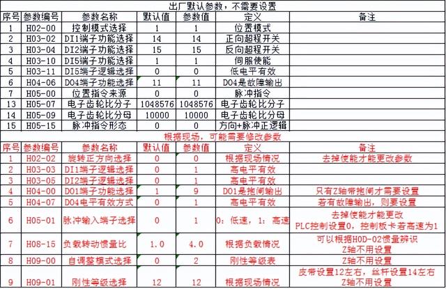許多參數都是默認值,不需要設置,部分參數要根據電機是否抱閘,是PLC還是板卡控制來根據實際應用設置。