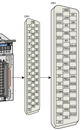 若可以正常運行,說明可能是CN1接線或者控制板卡(或PLC接口)有問題,若仍然不能正常運行,可能是伺服參數設置或者CN1這邊接口有問題;