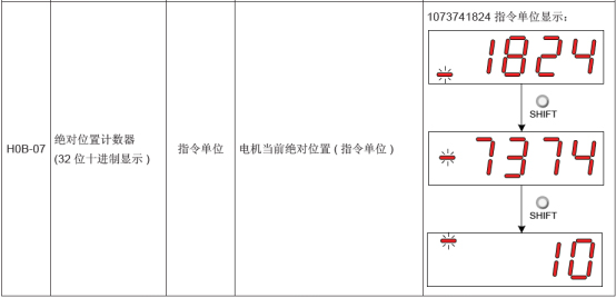 4、H0B-07是反應當前電機位置(指令單位),可以用來判斷編碼器是否正常,旋轉電機后,值的變化;