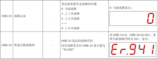 6、H0B-33,H0B-34可以查看過去電機的故障記錄;