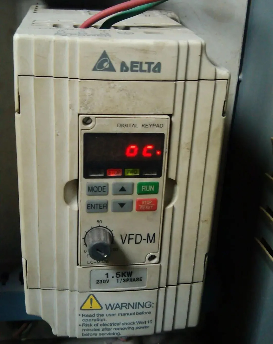 該機型以“程序卡住”、拒絕操作的方式,提示變頻器有OC故障存在!