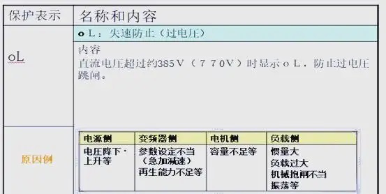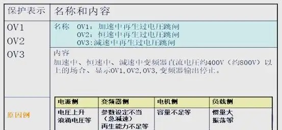 E.OVT報錯主要分為以下三種情況,用戶可根據(jù)現(xiàn)場情況,從電源側(cè)、變頻器側(cè)(涉及變頻器參數(shù))、電機(jī)側(cè)以及負(fù)載側(cè)進(jìn)行排查并解決報錯。