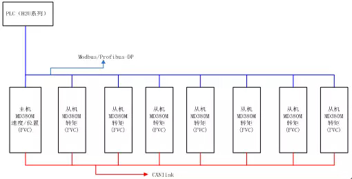 多臺電機同步控制時,其中一臺作為控制的主機,其它最多7臺作為控制的從機(已經有實際案例使用中)其中: