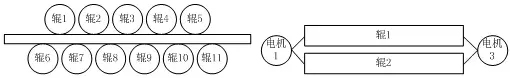 電機8:通過減速箱驅動輥9、輥10、輥11的右端