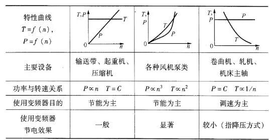 變頻器的正確選擇對于控制系統的正常運行是非常關鍵的。選擇變頻器時必須要充分了解變頻器所驅動的負載特性。人們在實踐中常將生產機械分為三種類型: 恒轉矩負載、恒功率負載和風機、水泵負載。